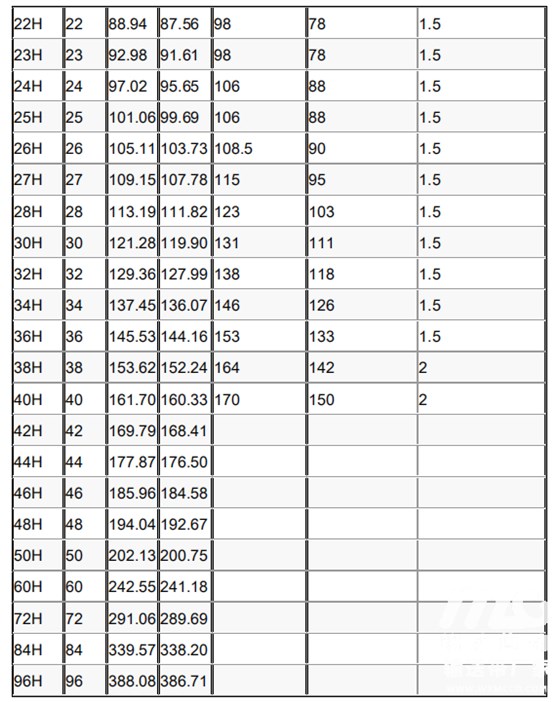 XXH 型同步帶輪尺寸表 單位:(mm)